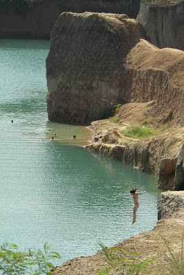 I sjön som bildats av grustaget Chiang Mai Grand Canyon står skylten "Don´t swim" kvar. Det hindrar inte att folk fortsätter att våghalsigt hoppa nerför de spektakulära branta kanterna. Att två ungdomar drunknade i sjön för ett par veckor sedan är nog obekant för de flesta, åtminstone för faranger. Det var på morgonen efter den årliga religiösa vandringen upp till Doi Suthep som fyra killar, efter den 11 km långa vandringen, åkte till sjön för att bada. En fick panik, tog tag i sin kamrat och båda drogs ner i djupet.