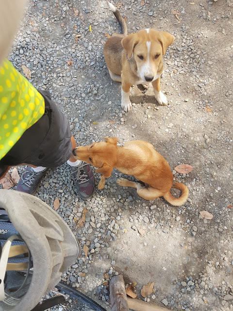 Om inte en kram så fick jag ett vänligt nosande av kaféets hundar.